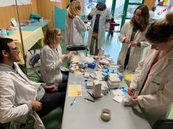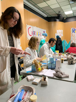 En tant qu'étudiants en Pharmacie nous tenons les stands du laboratoire biologique où l'enfant est amenée à faire quelques petites expériences pour le familiariser avec la notion de bactéries. Nous tenons aussi le stand de l'officine où nous délivrons de faux médicament aux enfants pour leur nounours tout en essayant de leur faire comprendre l'importance de la suivi d'un traitement et le danger d'en abuser ou de prendre des médicaments au hasard.